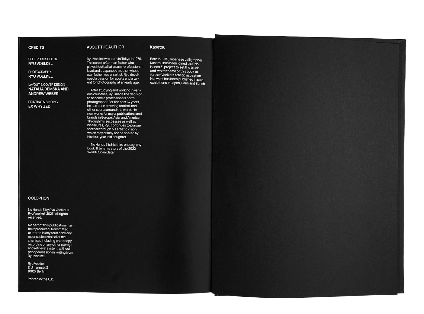 No Hands is a set of three football photography books about the FIFA World Cup by Ryu Voelkel. Combining the highlights and drama of the World Cup with the subtler details and moments that capture the spirit of the beautiful game, Ryu tells the story of the 2014, 2018 and 2022 tournaments in Brazil, Russia and Qatar in his unique way.